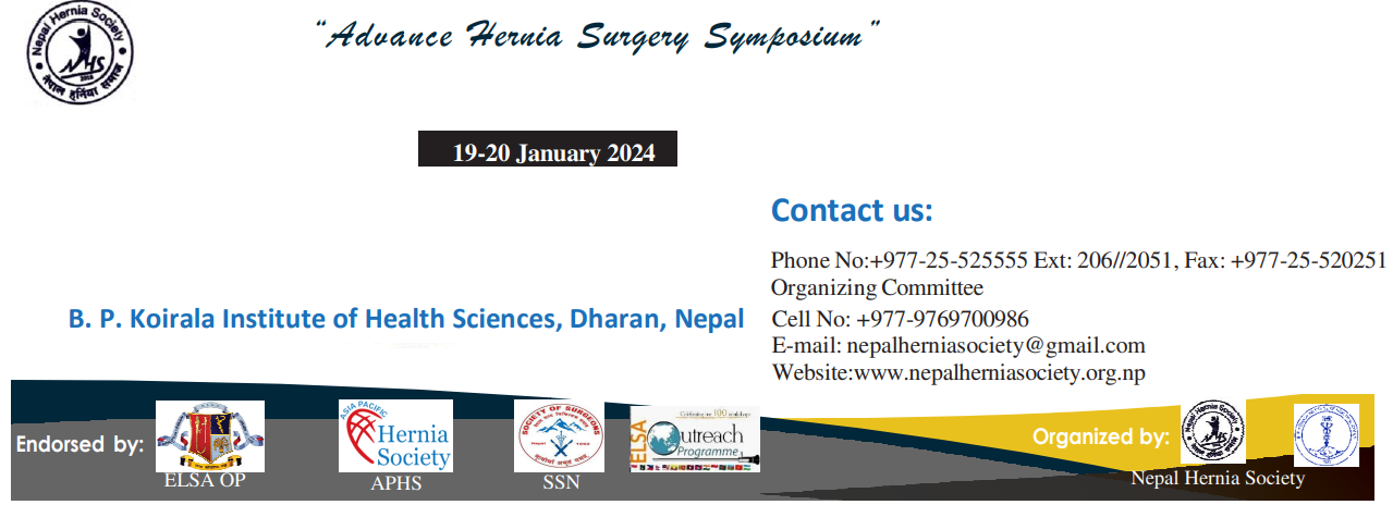 On behalf of the organizing committee, it is our pride and privilege to invite you all for the Advanced Hernia Surgery Symposium to be held at BPKIHS, Dharan Nepal, one of the beautiful tourist destinations of Nepal. The Organizing Committee is working hard to make this workshop a special one for all of you.